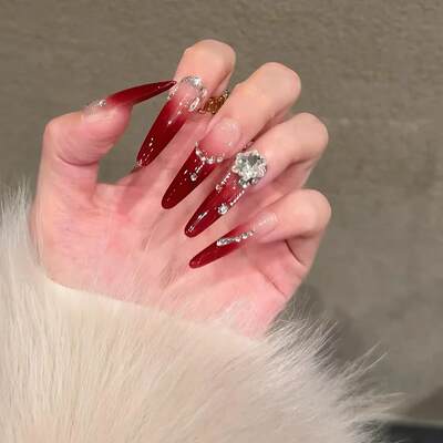 【红礼服】纯手工圣诞新年穿戴甲酒红色渐变显白高级感轻奢美甲哪里有卖? 在淘宝 y2k辣妹美甲 就有可以买到。