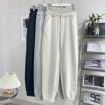 高腰抽绳休闲阔腿裤女加绒