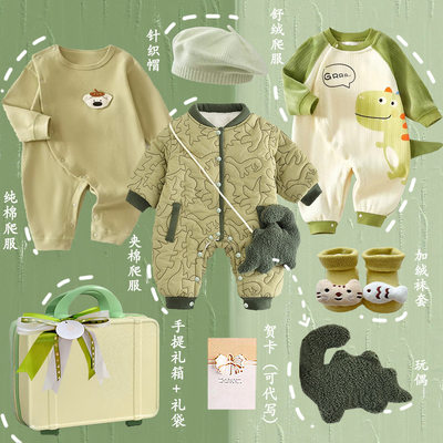 婴幼儿衣服套装新生儿礼盒男孩儿ins风爬服满月百天送礼物高档