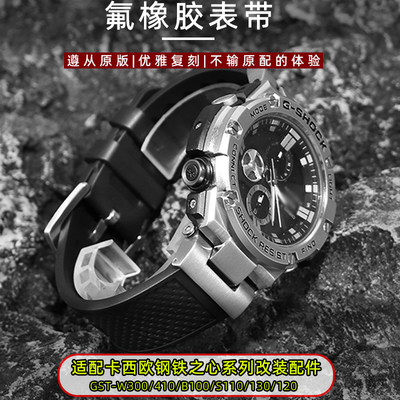 适配卡西欧GST-B100改装氟橡胶表带GST-S130 300 330 110 120配件